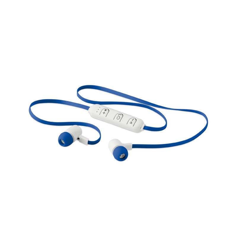 Auricolari Bluetooth 4.2 con microfono. Batteria ricaricabile da 55 mAh Li-On. Confezionato in scatola di plastica.
