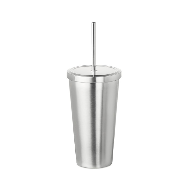 Bicchieri da bibita a doppia parete in SS con cannuccia. Capacità: 500 ml.