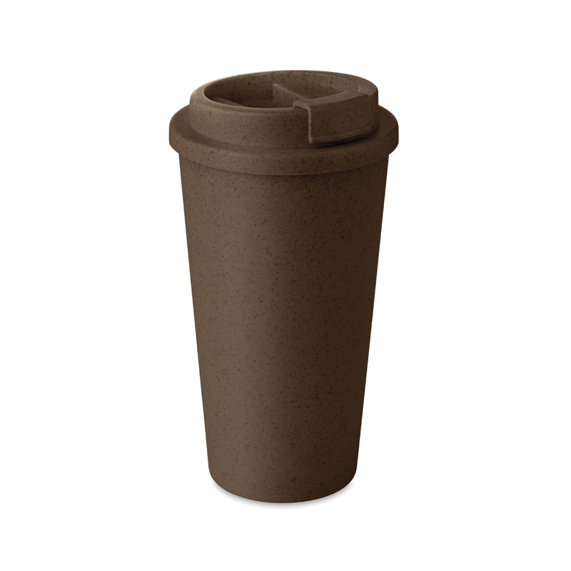 Bicchieri doppio strato composti da 50% fibra di bamboo e 50% in PP, con coperchio. Capacità 475 ml