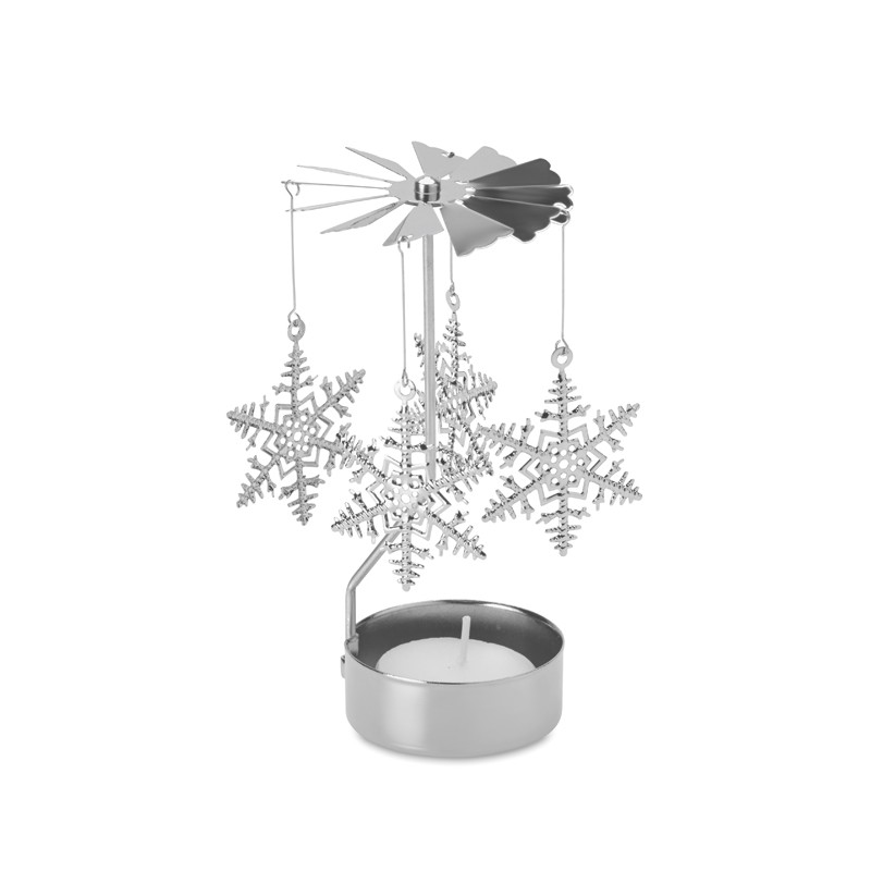 Portacandele con sei fiocchi di neve che girano con il calore della fiamma. Tealight inclusa.