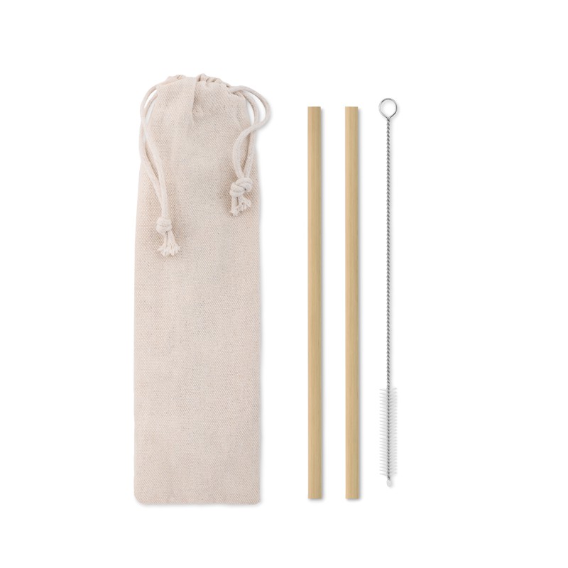 Set di 2 cannucce realizzate in bamboo riutilizzabili, con spazzola di pulizia in acciaio inossidabile e nylon, in sacchetto di cotone. Il bamboo è un materiale naturale pertanto la superficie e lo spessore possono variare.