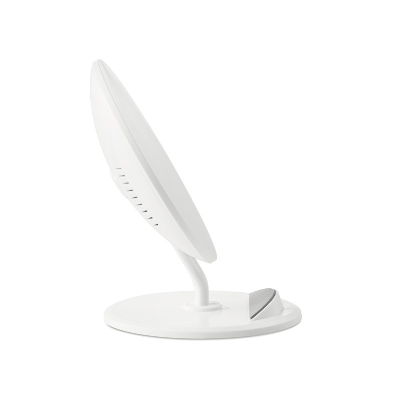 Caricabatterie wireless con supporto. Connettere il dispositivo al computer, appoggiarvi lo smartphone per avviare la ricarica. Output: DC5V/1.0A. Compatibili con gli ultimi androids, iPhone® 8, X e successivi. Ideale per la personalizzazione in full color.