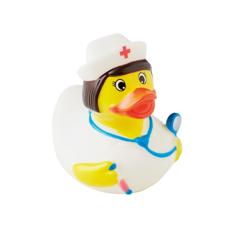 Paperella galleggiante mini in PVC. Può essere usata come antistress stringendola nella mano.