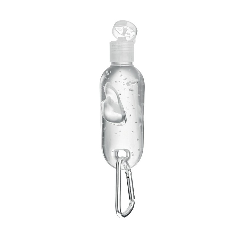 Gel mani personalizzati con moschettone in bottiglietta in PET con tappo a scatto da utilizzare senza risciacquo