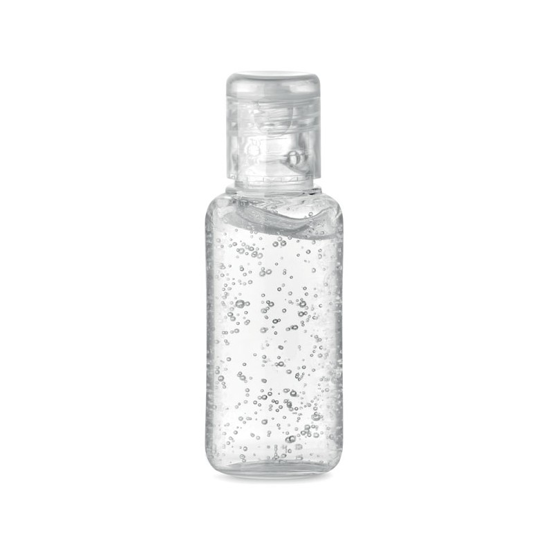 Soluioni gel mani personalizzati in flacone in PET con tappo a scatto. Da utilizzare senza risciacquo