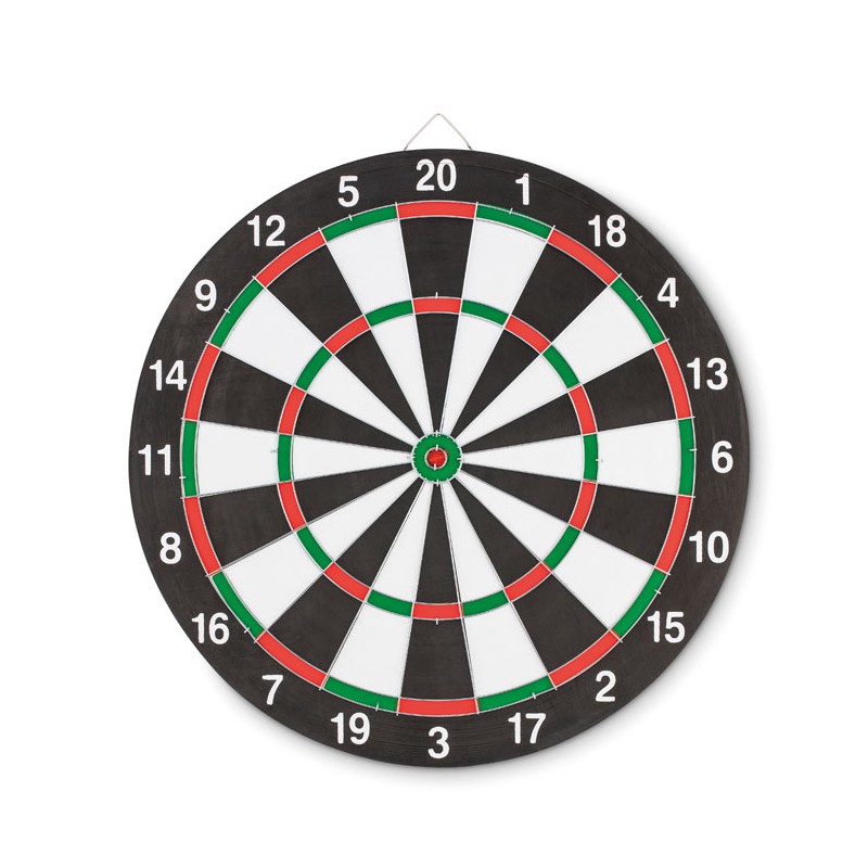 Gioco del tiro al bersaglio. Stampa del gioco su entrambi i lati. Include 3 freccette in PVC.