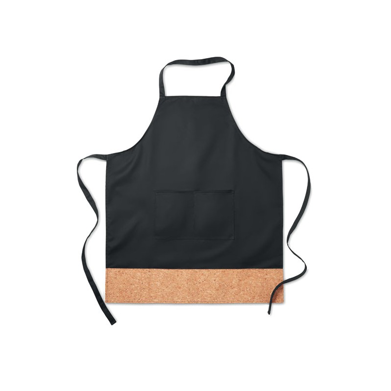 Grembiule da cucina con 2 tasche frontali (35% cotone e 65% poliestere) con fascia in sughero sul fondo. 240 gr.