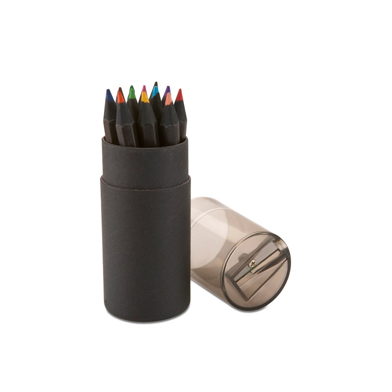 Set 12 matite colorate in confezione cilindrica di cartone e coperchio in plastica con temperino