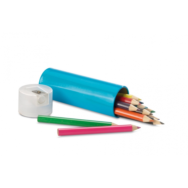 Set 12 matite colorate in legno in confezione cilindrica in metallo con temperino nel coperchio