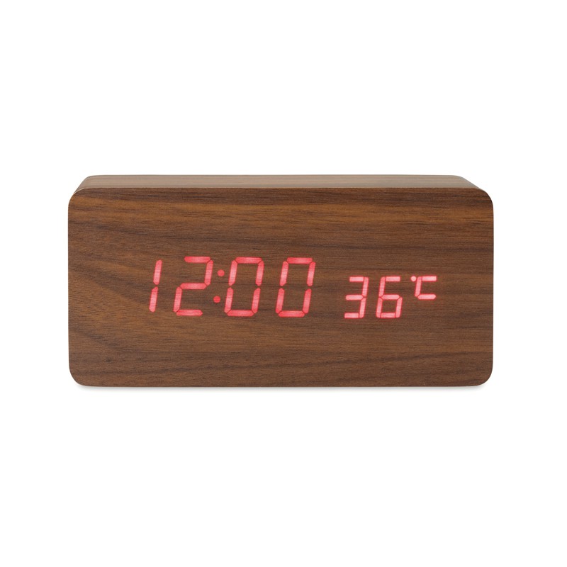 Orologi da tavolo con indicazione della temperatura, funzionalità di ricarica wireless e sveglia. Display a LED. In MDF. Adattatore AC-DC a 2 spine incluso.