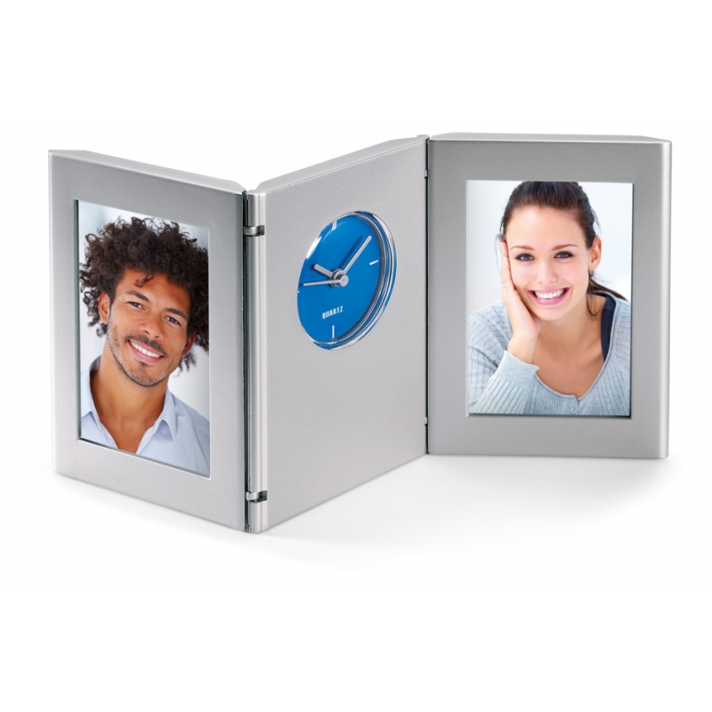 Orologio analogico richiudibile con 2 vani per foto. 1 pila bottone inclusa