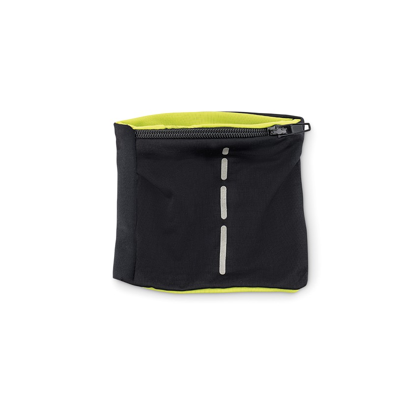 Polsino in lycra con bande catarifrangenti e tasca integrata con chiusura zip.