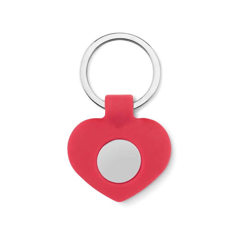 Portachiavi in silicone a forma di cuore con gettone in metallo.