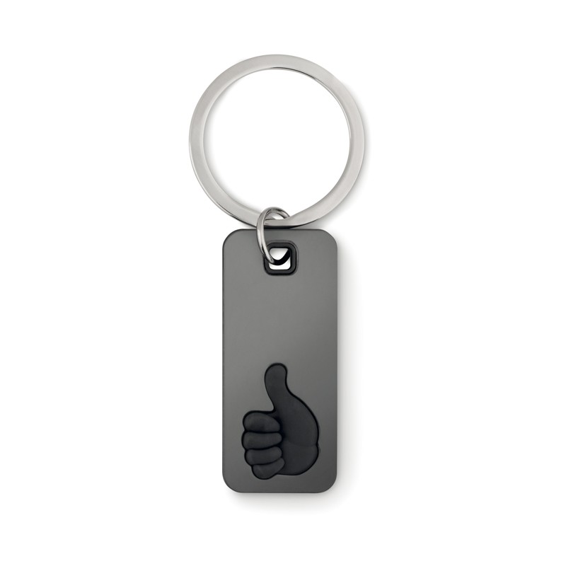 Portachiavi rettangolare in acciaio e dettaglio simbolo "OK" in ABS.