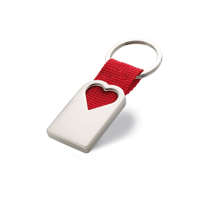 Portachiavi in metallo satinato e fascetta in tela con decorazione 'cuore' presentato in singola confezione regalo
