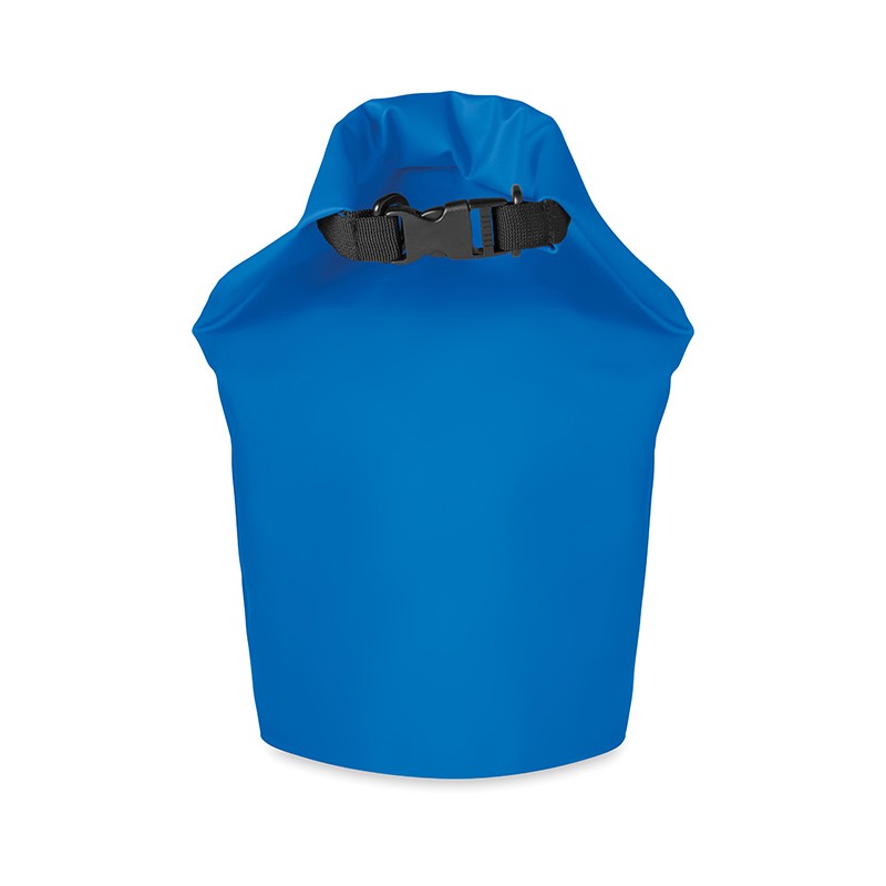 Sacche waterproof in PVC con chiusura con fibbia di plastica nera. Capacità 10l. Possono essere indossate a mano o a tracolla. Disponibili in due taglie
