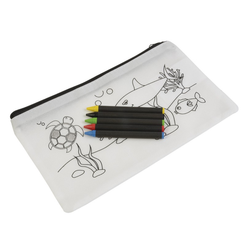 Set di 5 pastelli a cera colorati a sezione cilindrica, in astuccio colorabile in tnt