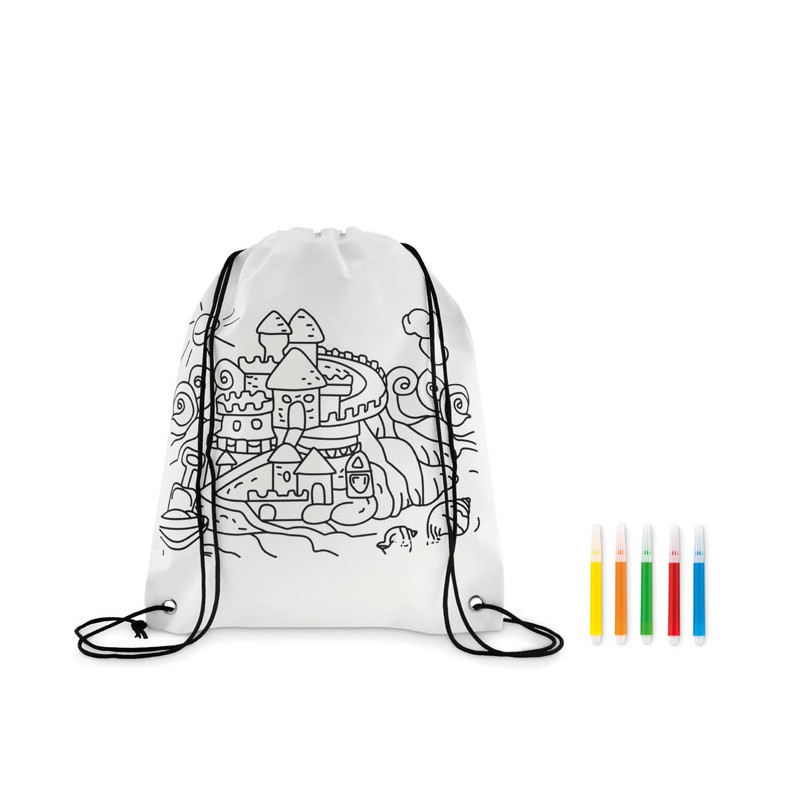 Sacche in tnt da colorare. 5 Pennarelli inclusi. 80gr.