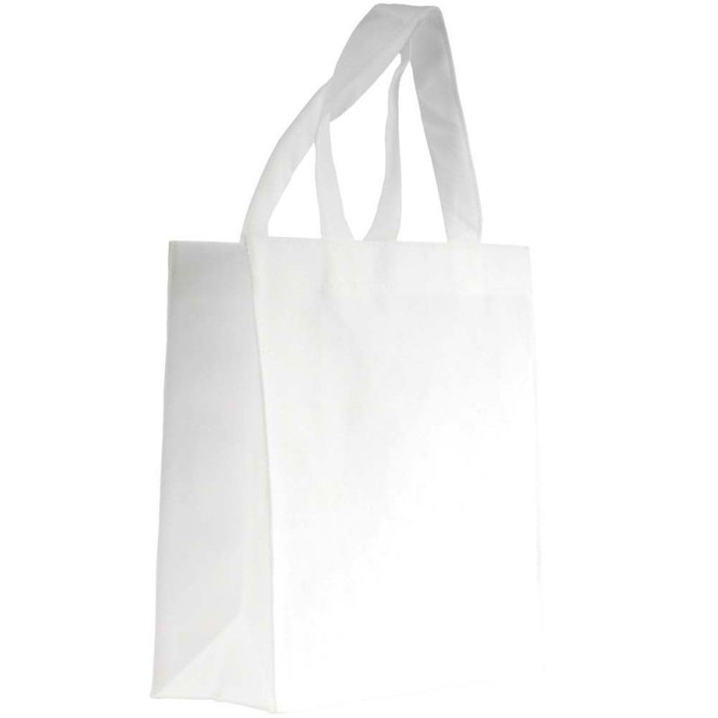 Shopper mini con soffietto in tnt 80 g/m2 cucito, manici corti