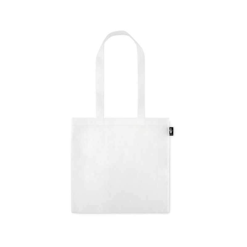 Shopper in non woven PLA (da mais) con manici lunghi. Il PLA (acido polilattico) è costituito da piante fermentate quindi privo di elementi tossici e carboni.