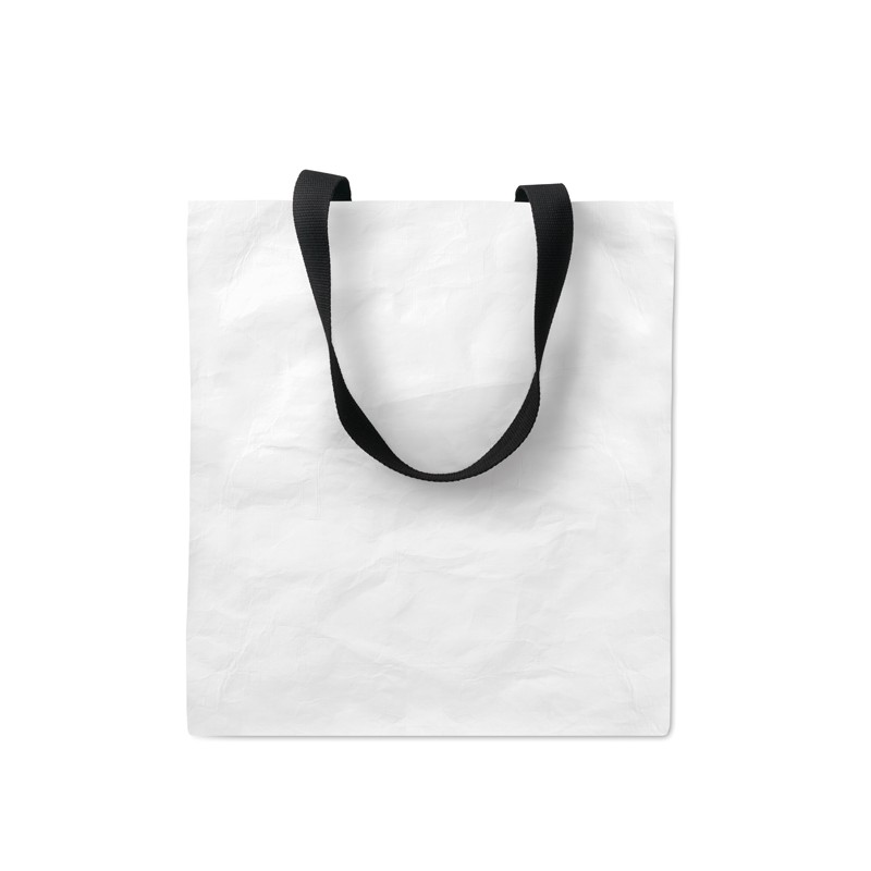 Borsa shopping realizzata in resistente materiale Tyvek® riciclabile, con rivestimento colorato e manici lunghi in cotone. Questo materiale è lavabile, resistente all'acqua e traspirante.