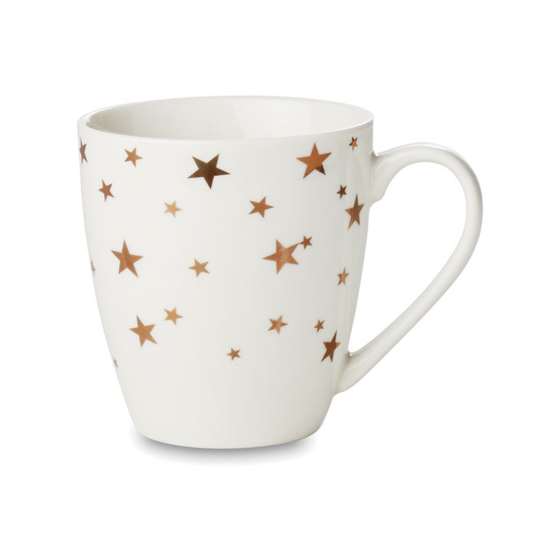 Tazze natalizie in ceramica bianca con disegni di stelle color oro. Capacità 200ml.