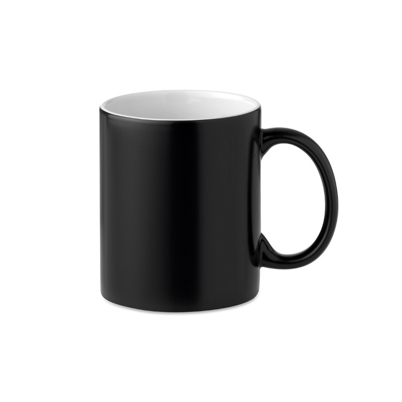 Tazza in ceramica da 300ml con rivestimento per sublimazione. La tazza cambia colore e mostra la tua personalizzazione quando si versa al suo interno un liquido caldo (ameno) 50°C.