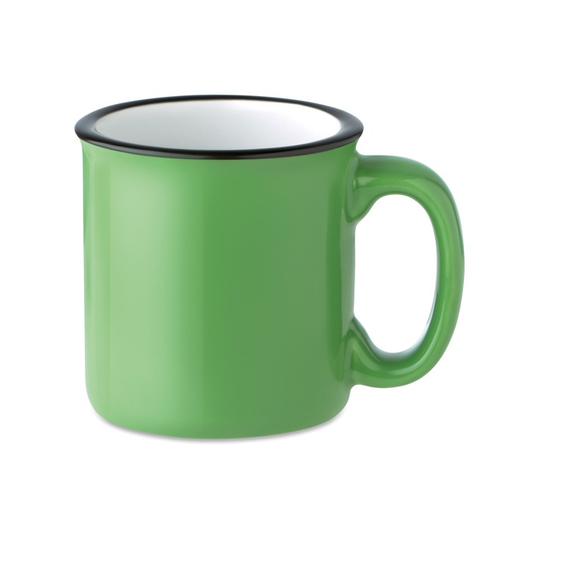 Tazza vintage in ceramica, 290 ml. Confezione singola in cartoncino bianco. Stampa in transfer su ceramica resistente al lavaggio in lavastoviglie.
