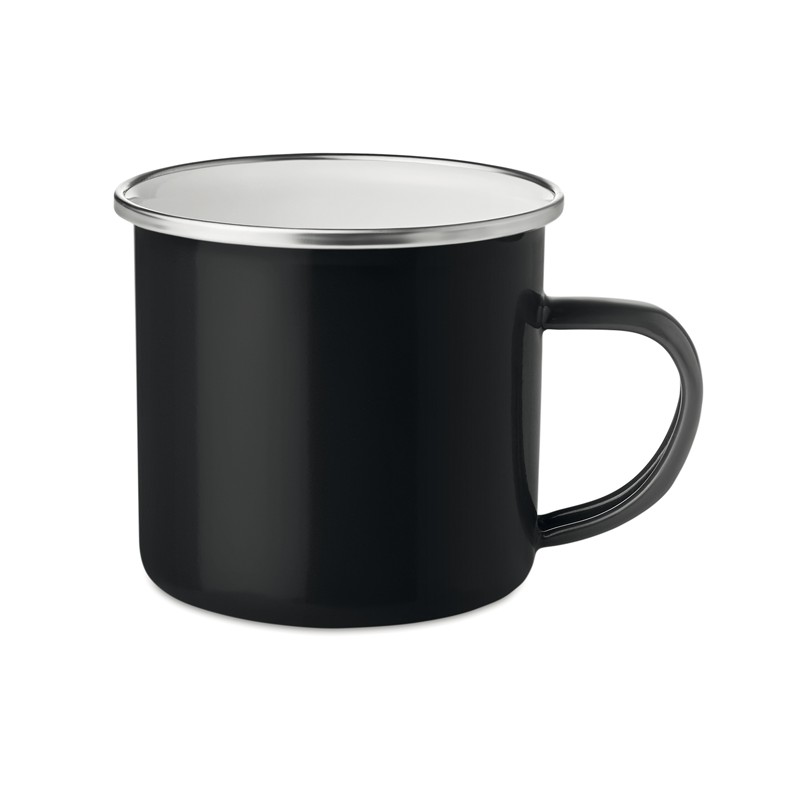 Tazze vintage realizzate in metallo smaltato in diversi colori. Capacità 350 ml.