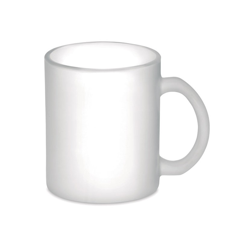 Tazze in vetro opaco con copertura speciale per sublimazione. Capacità 300ml.