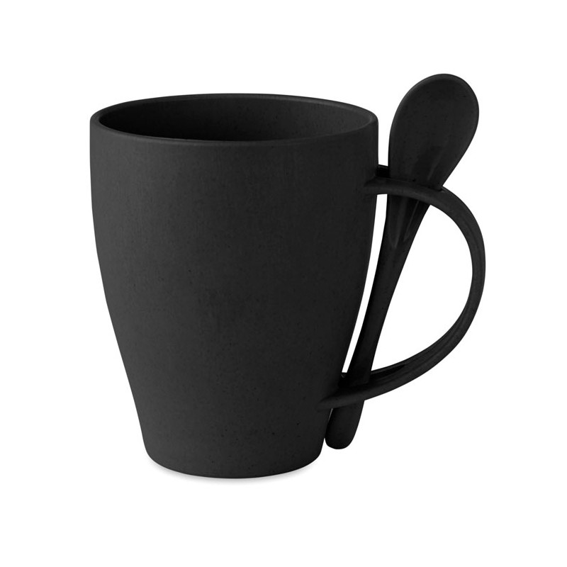 Tazze e cucchiaino in bamboo riutilizzabili in 50% fibra di bamboo e 50% PP. 300ml.