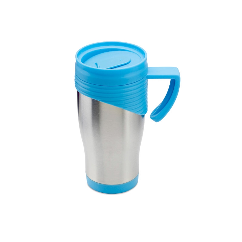 Tazza termica (455 ml) in acciaio inossidabile con manico e coperchio in plastica